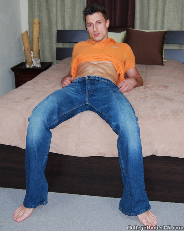 Tyler Dorn Busts A Nut Tyler Dorn jerks off for you and shows you every inch of his chiseled bod in this steamy vid. After some extensive conversation about his aggressive sexual tendencies, Tyler whips off his shirt to show us his extremely hot chest, arms, and abs - then the jeans come off to reveal a thick cock and perfect butt. Everything about Tyler is sexy from top to bottom! When Tyler is not studying he must spend all of his time in the gym. Thankfully he spent some time with us in front of the camera - stroking his thick cock, spreading his ass for us to see his tight hole, and giving everyone a hot stud to get off with.